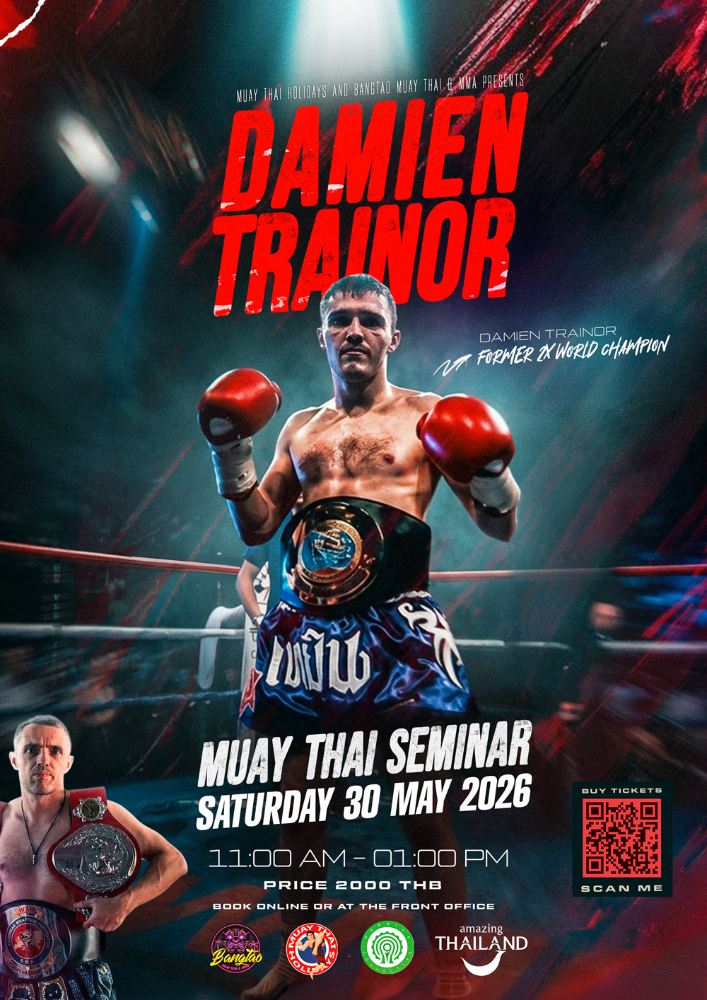 Train under former two-time World Champion Damien Trainor in an exclusive two-hour Muay Thai seminar at Bangtao Muay Thai & MMA - covering the technical striking, clinch work and fight strategy that have shaped fighters at the UFC, Bellator and Glory. Saturday 30 May 2026, 11:00 AM – 1:00 PM. 2,000 THB. Limited spots — secure yours now.